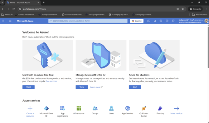 1. Go to https://portal.azure.com and log in with your company credentials.