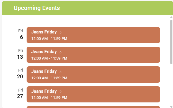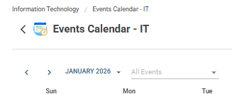 The Events Calendar application shows the view of all staff events, or specific types of events or team events.