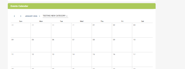 Events Calendar Widget Display: (Title can be customized), You can also change category previewed on the calendar view