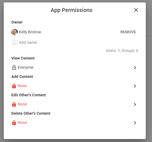 - Add, Edit & Delete App Permissions: Edit 'View Content', Add Content, Edit 'Other's Content' & Delete 'Other's Content'