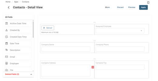 The Contact App comes with a standard 'List View' & 'Detail View' layout for its default home page. All layouts can be customized.