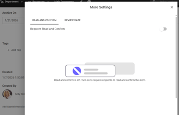 Review Content and Read & Confirm are two functions which help keep documents and users up-to-date.
