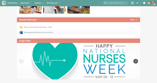 The Image Slider widget displays a series of large-scale images that rotate or can be manually navigated. This widget is ideal for banners, hero images, and promotional content. Users can navigate between images by clicking the navigation arrows.