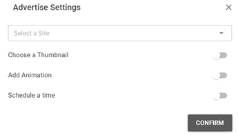 Create New content, click publish and customize advertising pop up.