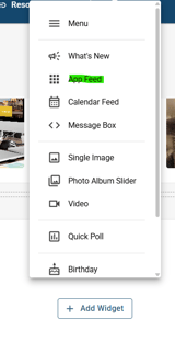 Add Widget > Application feed > Select Source App